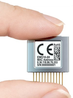 Во-втором случае, в EM510 загружается приложение Device Server (SOI), далее модуль распаивается на существующей плате таким образом, что несколько линий ввода-вывода используются для связи с центральным микроконтроллером. Таким образом устройство становится ethernet совместимым. Различные датчики, сенсоры, регистраторы, исполнительные элементы - практически любые элементы автоматизации и диспетчеризации можно доработать до "Ethernet совместимых" с помощью модуля EM510.